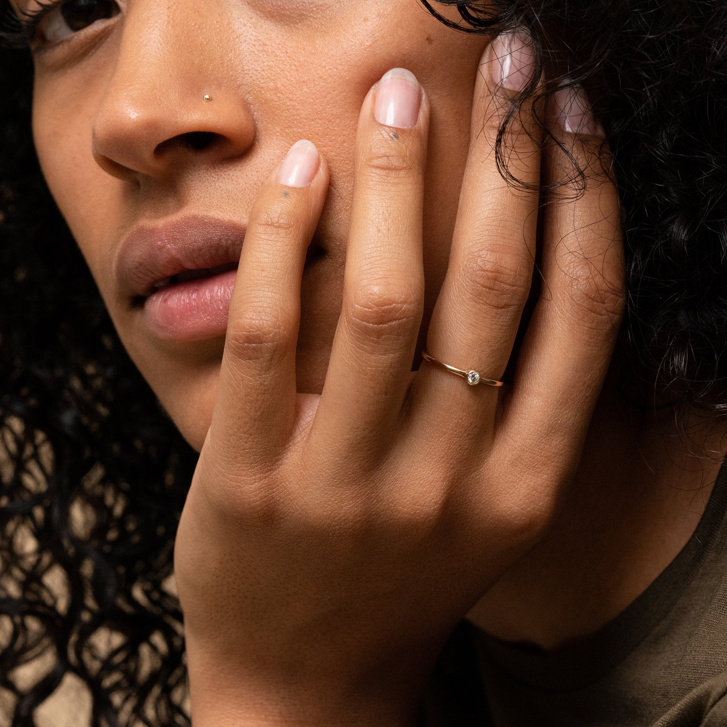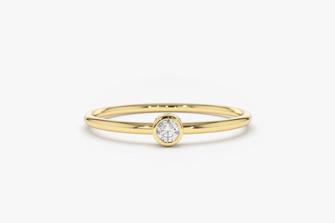 Diamond Ring / Diamond Solitaire Ring / Solitaire Diamond Ring / Promise Ring / Simple Diamond Ring / Thin gold Band Ring / Stacking Ring