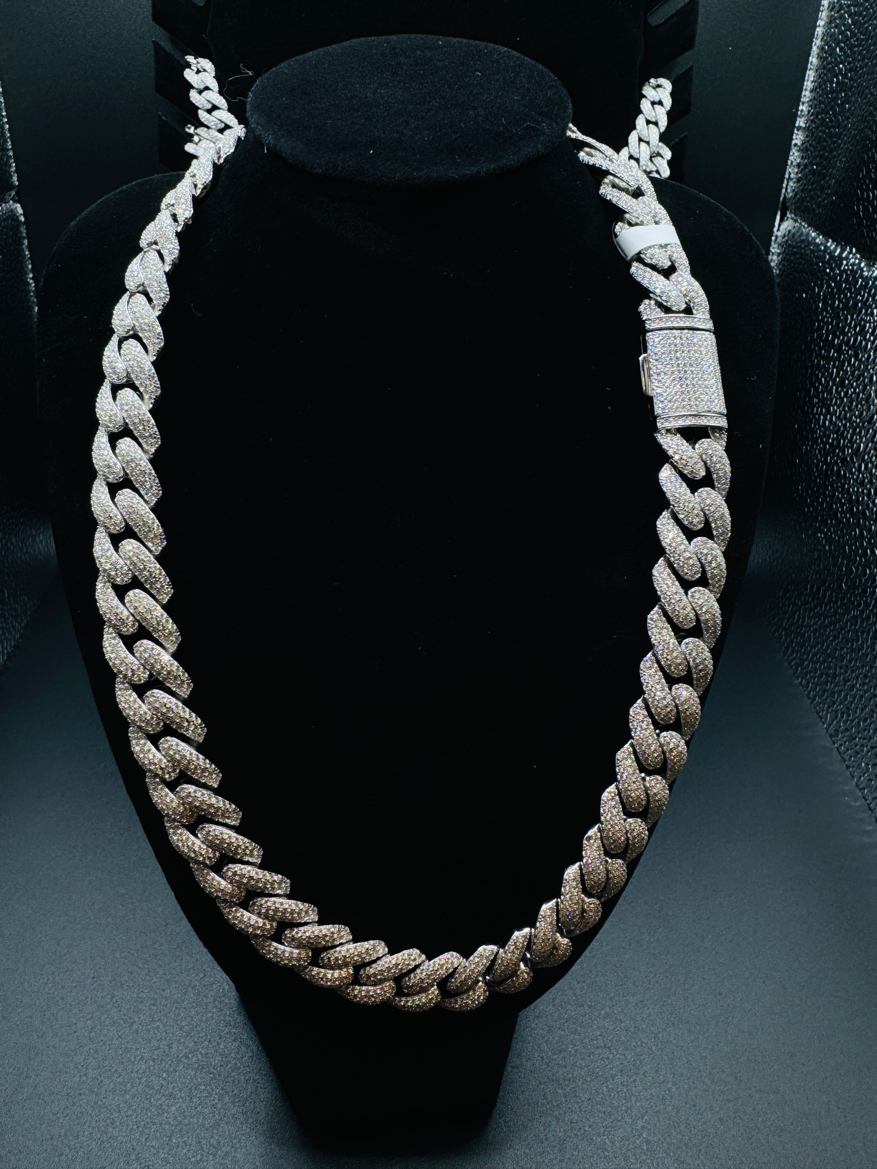 14MM VVS moissanite Cuban Link 925 Sterling Silver Chain