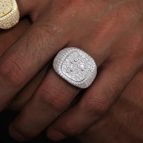 24k Gold Plated 925 Silver Moissanite Full Iced Out Square Signet Ring Jewelry