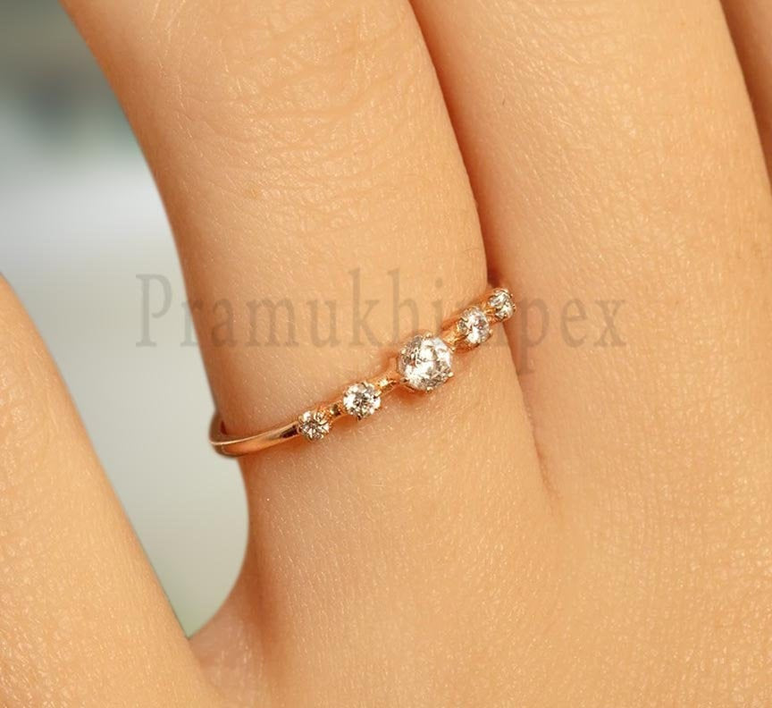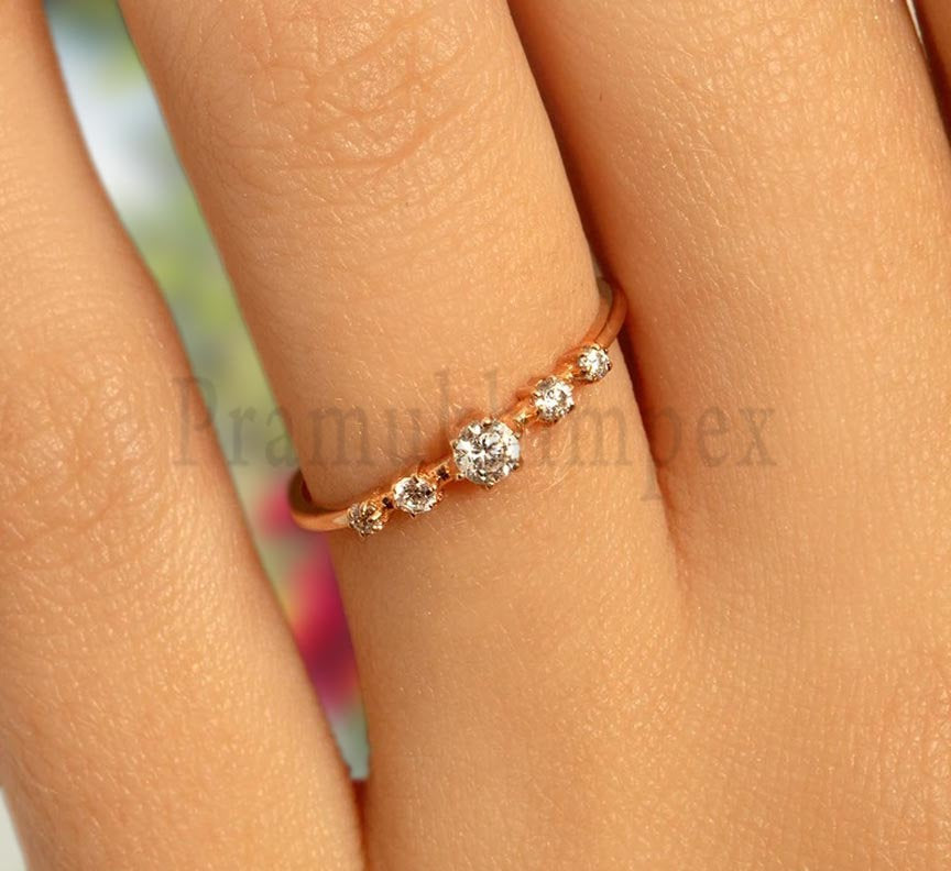 3mm Round Diamond Trio Ring Solitaire Diamond ring Dainty Ring Three Stone Ring moissanite Engagement ring Diamond Minimalist Ring simple