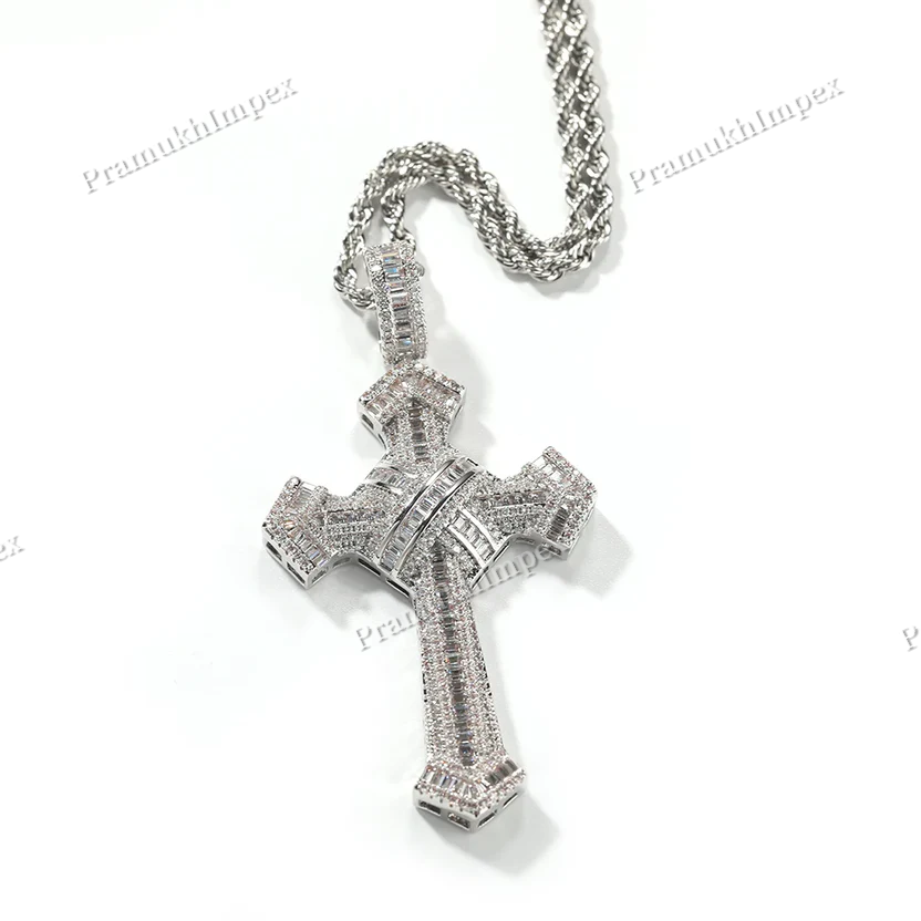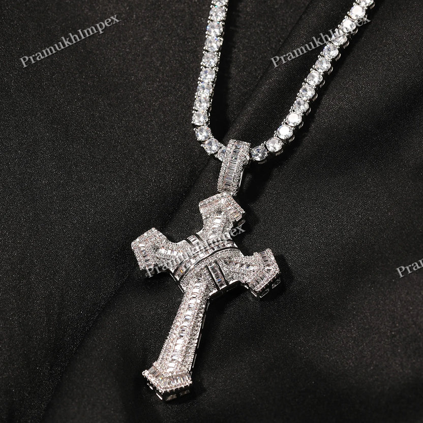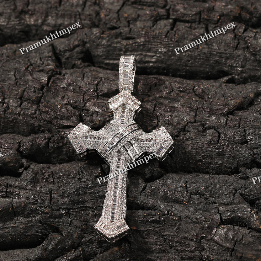 925 Silver Two-Edged Sword Design Moissanite Cross Pendant
