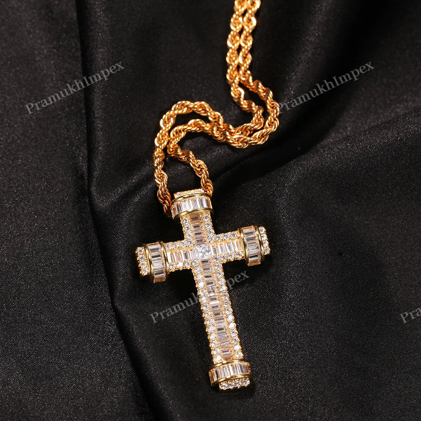 Baguette Moissanite 925 Silver Iced Out Cross Pendant