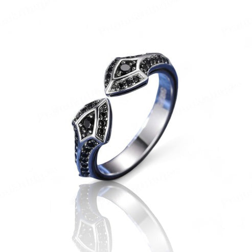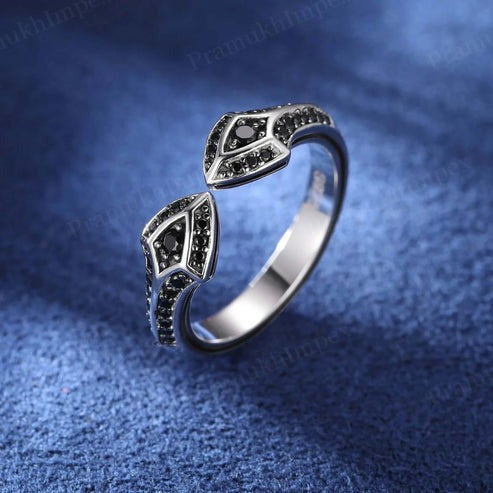 Black Moissanite Studded 925 Sterling Silver Antique Adjustable Gothic Ring