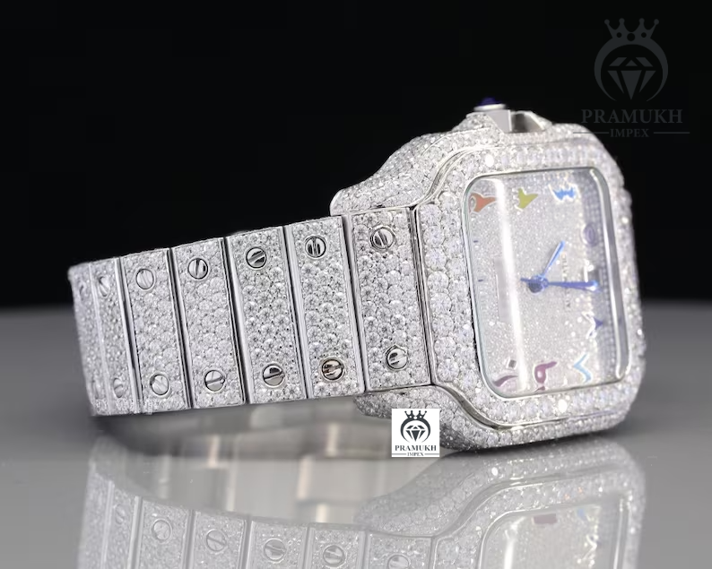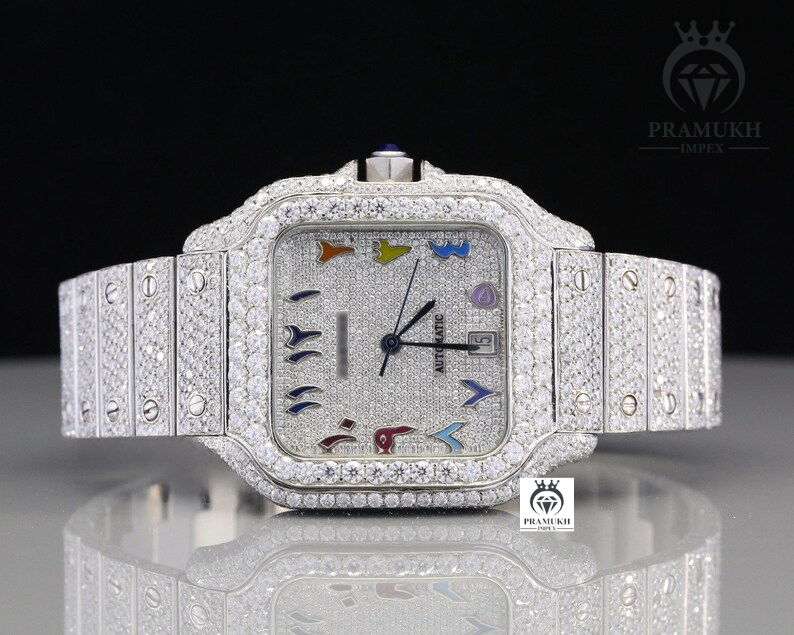 Colorful Numerical Iced Out Dial Moissanite Watch
