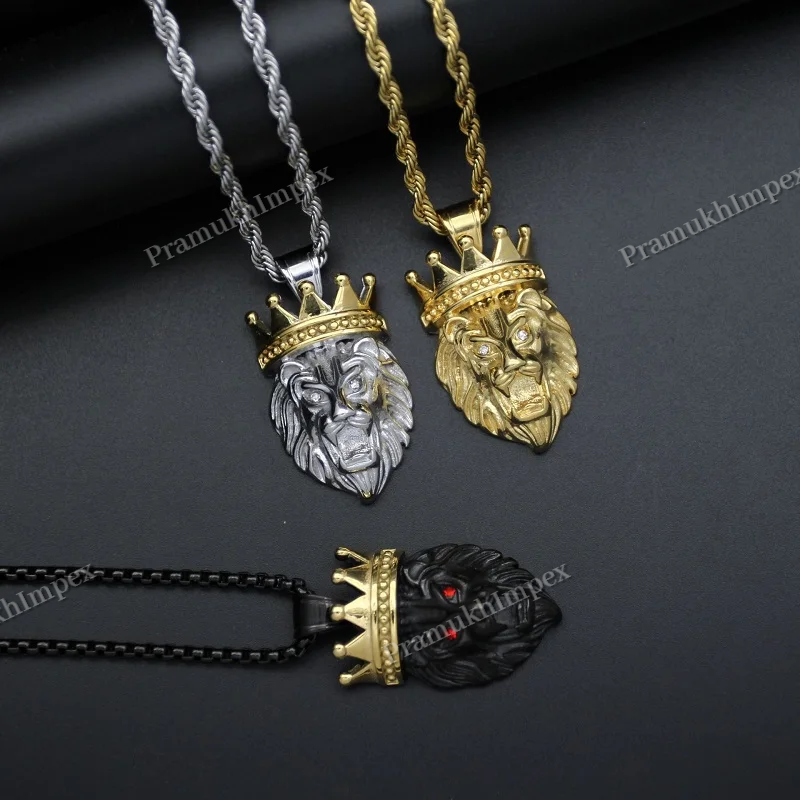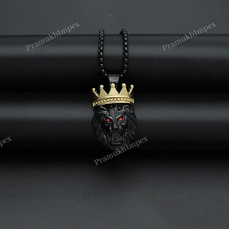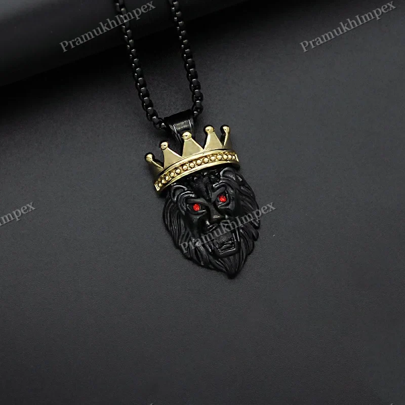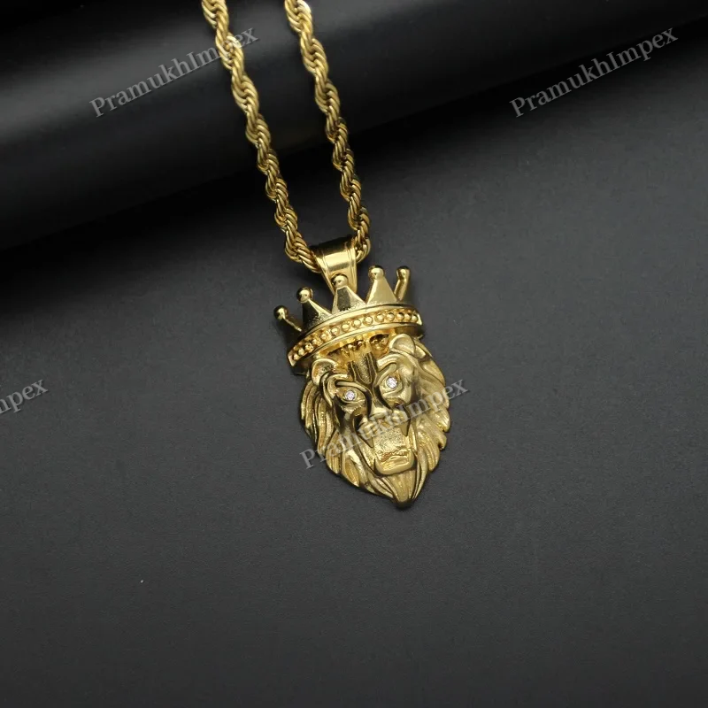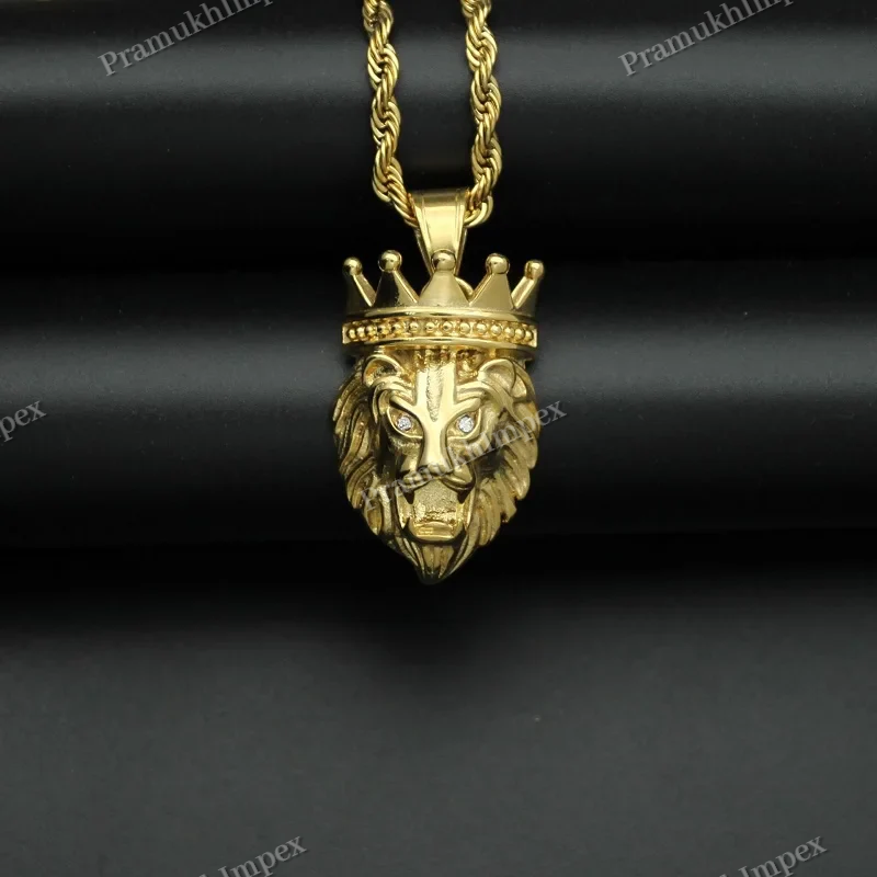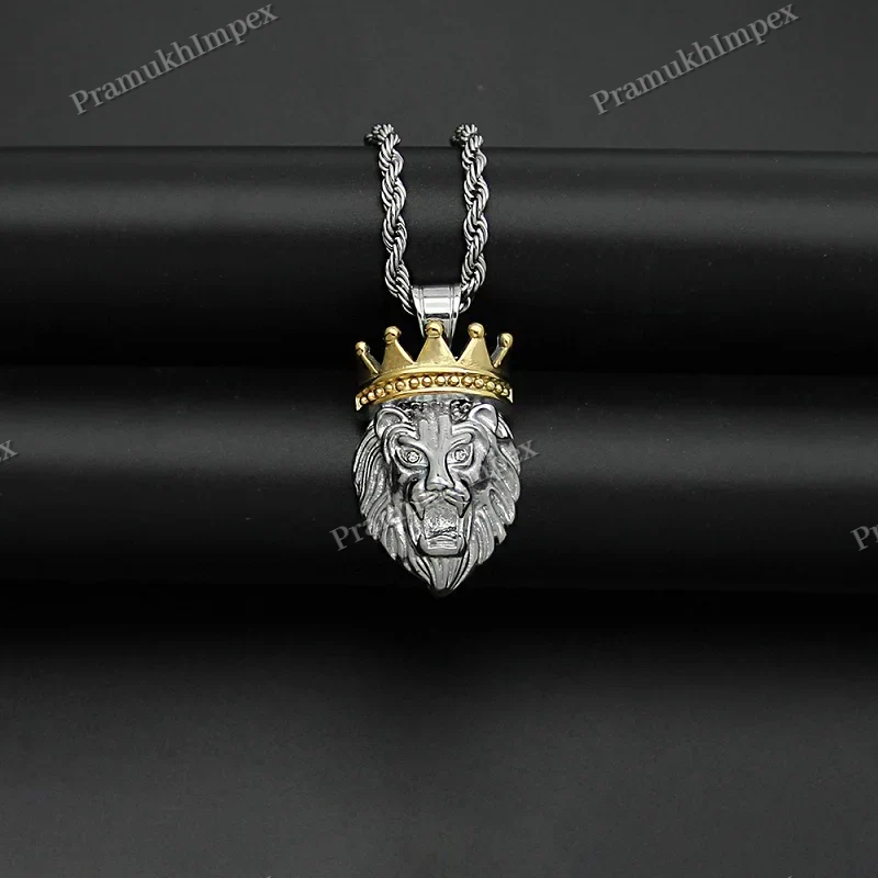 Customized Two tone Crowned Lion Head Pendant For Men's