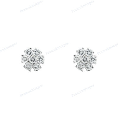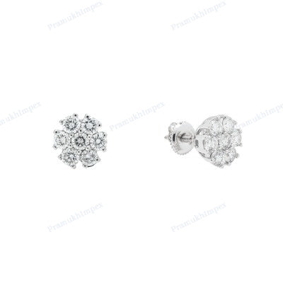 Floral Design Round shape Moissanite Diamond Silver Earrings