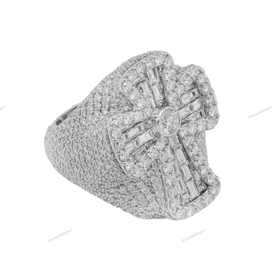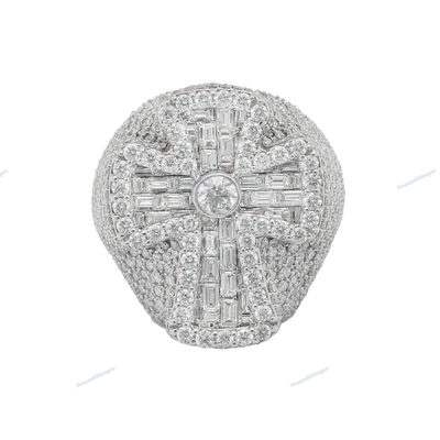 Fully Iced Out Rose Gold Moissanite Silver Cross Design Ring