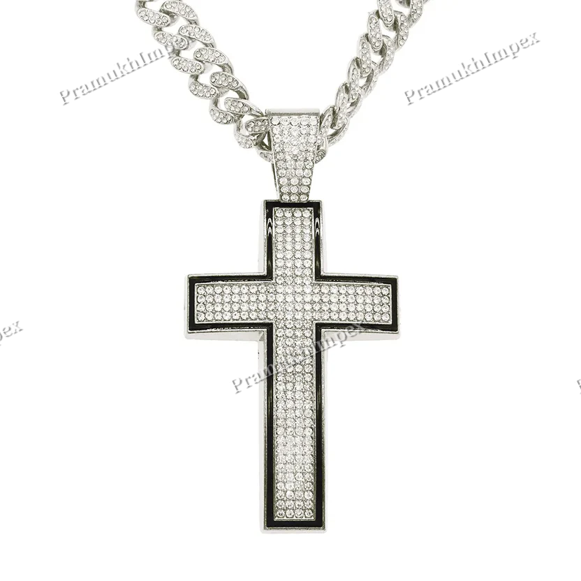 Handmade Lab Diamond Studded hip Hop Cross Silver Pendant