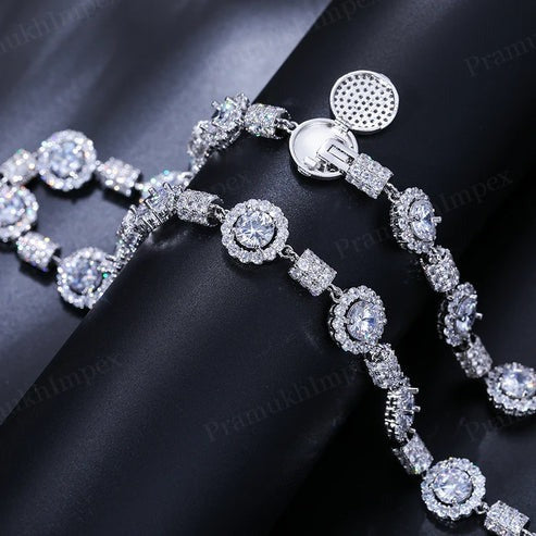 Hip Hop 14mm Moissanite Iced Out Tunnel Link Sterling Silver Bracelet