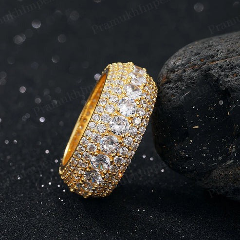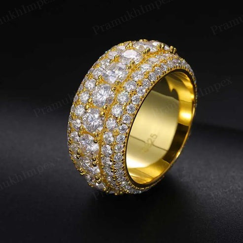Hip Hop Men's Style VVS Moissanite Silver Gold Plated Eternity Band Ring