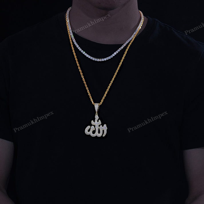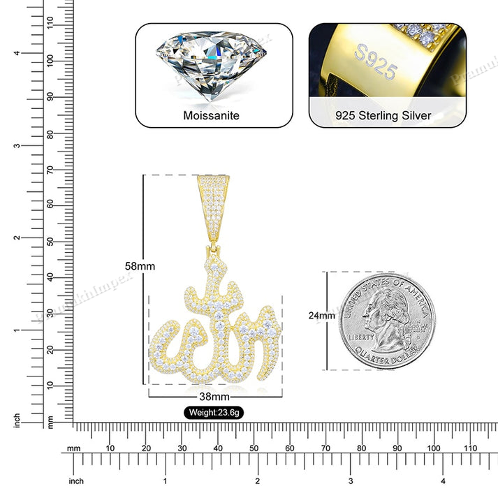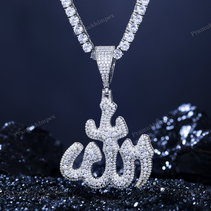 Hip Hop Moissanite Sterling Silver Bismillah Pendant