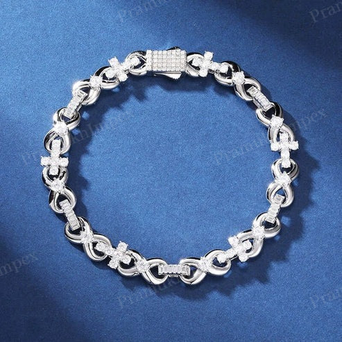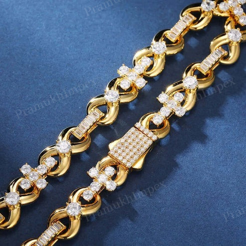 Iced Out 8mm Sterling Silver VVS D Moissanite Cross Infinity Chain Necklace