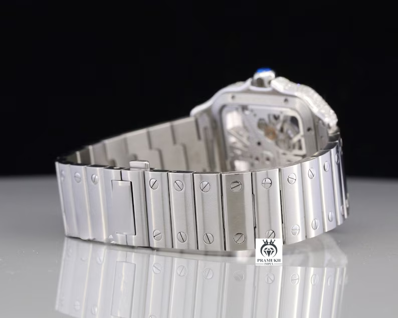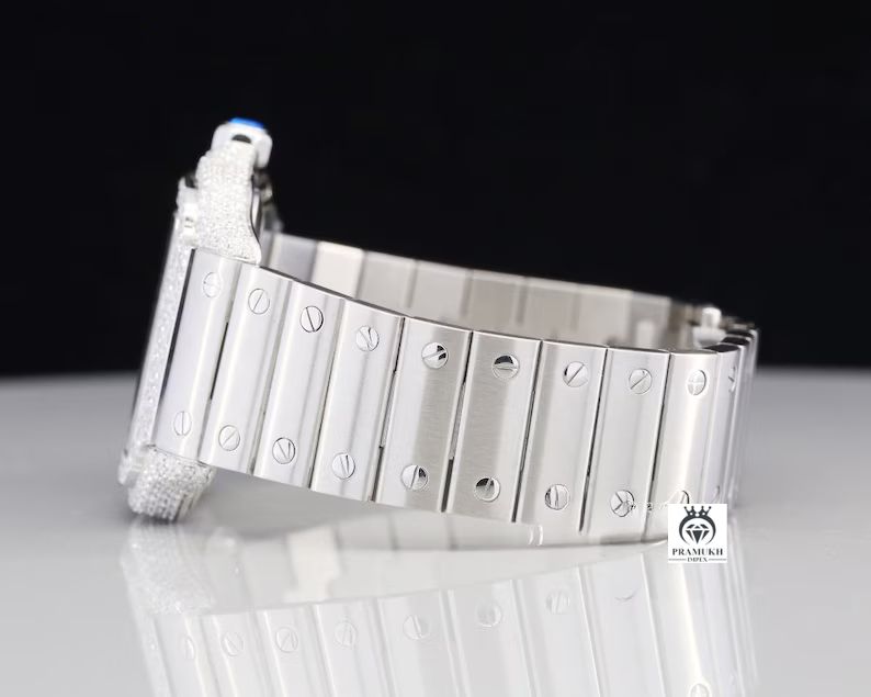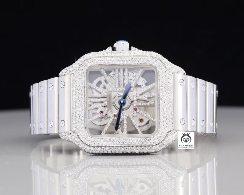 Iced Out Moissanite Dial Plain Custom Belt Watch