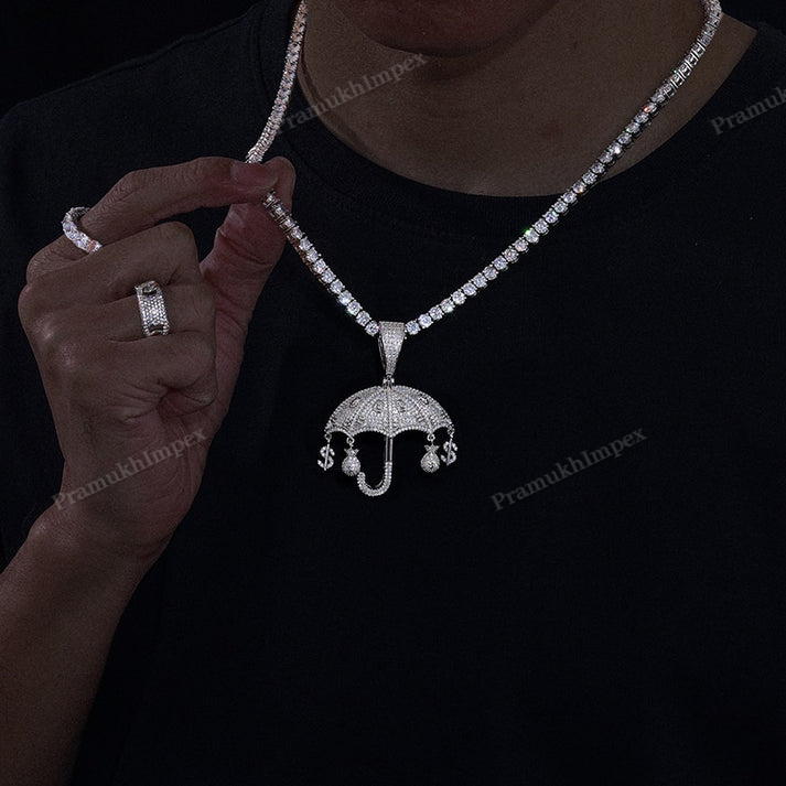 Moissanite Sterling Silver Money Bag Umbrella Pendant