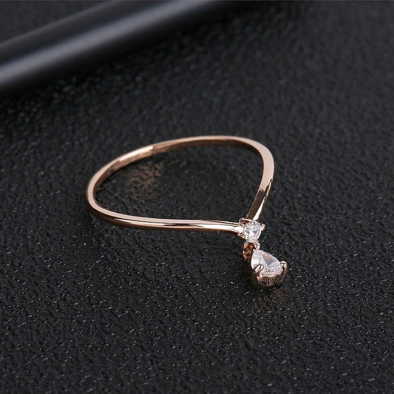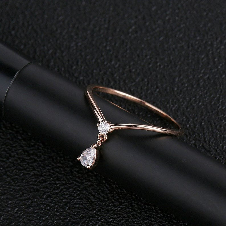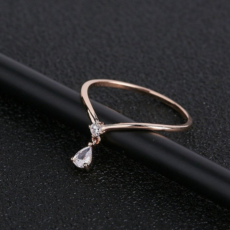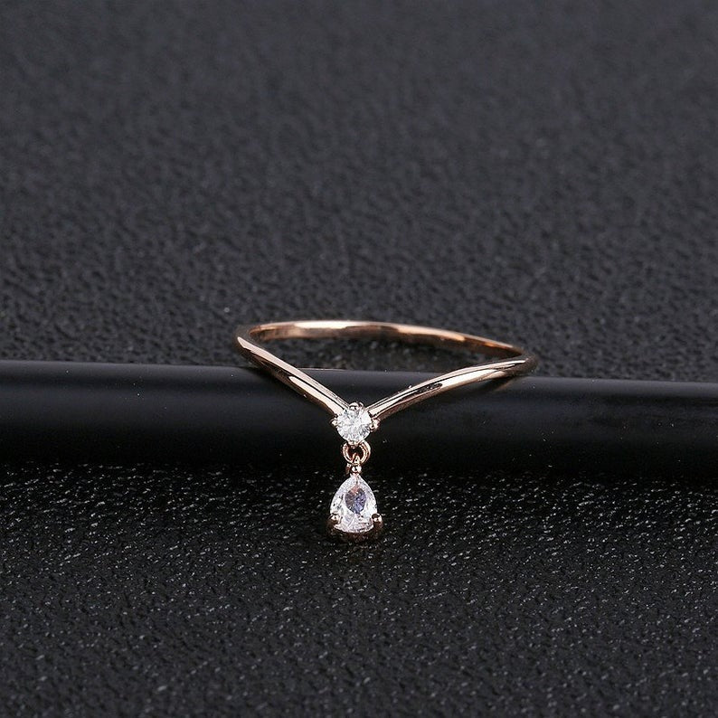 Pear Cut Moissanite Diamond ring, Solid Rose gold Engagement Ring, Unique Vintage Wedding Ring, Anniversary gift, propose ring for her