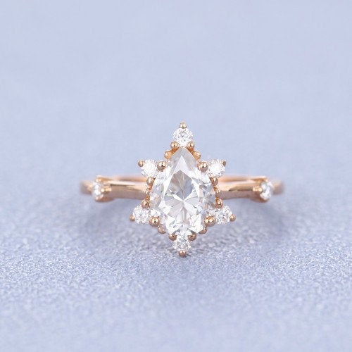 ● Center Stone: 6mm*8mm pear cut moissanite 1.16ct