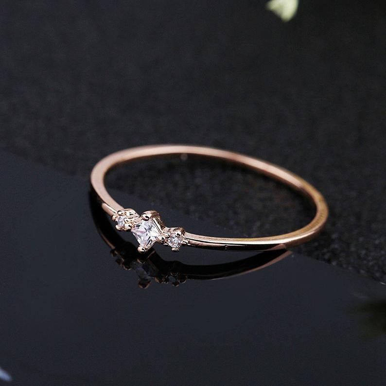 Princess Moissanite Engagement Ring Rose gold Unique simple Thin Dainty Round diamond wedding ring for women bridal anniversary gift
