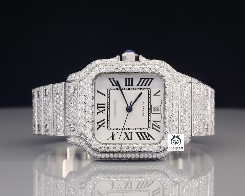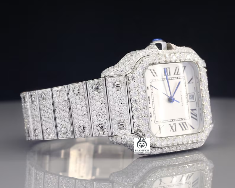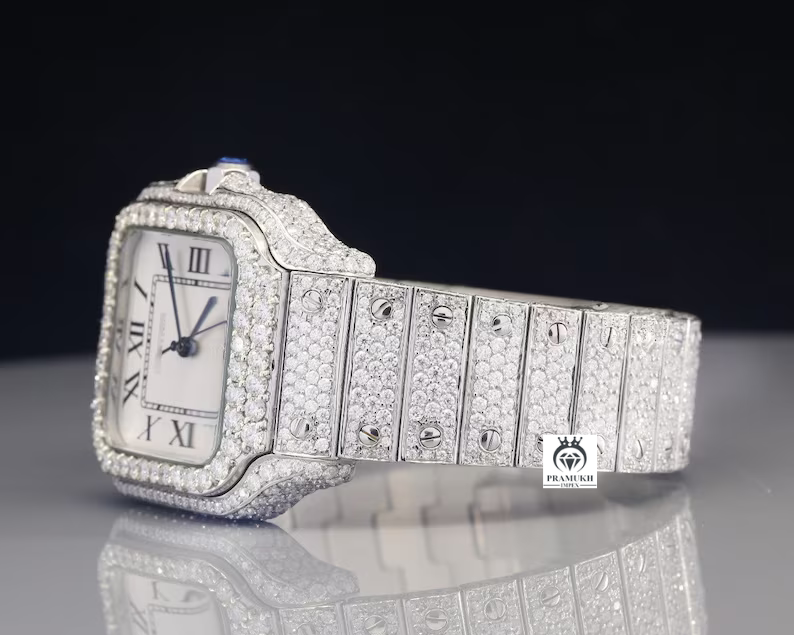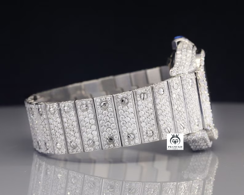 Rectangle Dial Iced out Belt Moissanite Watch