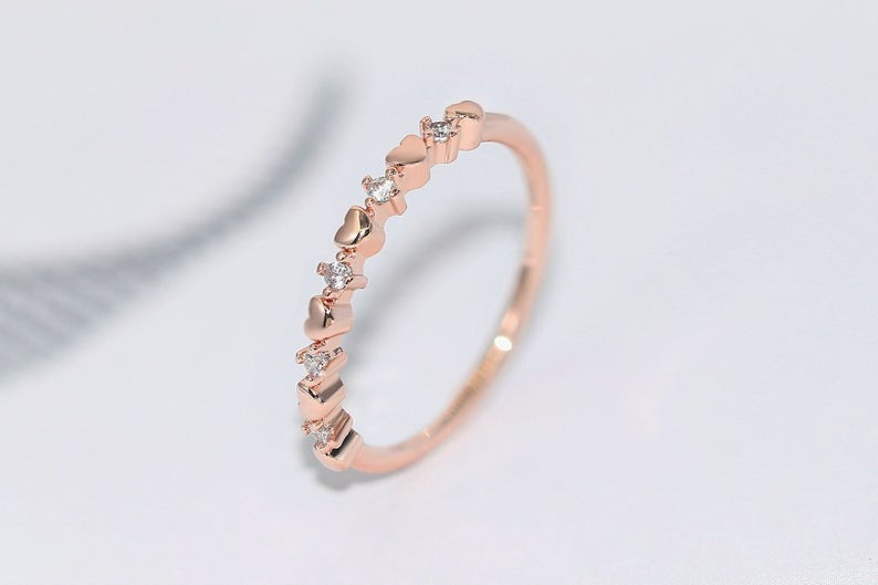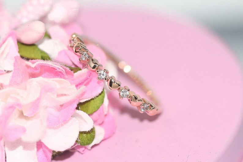 Round Cut Heart Shape Rose Gold Moissanite Stackable Ring, Art Deco Unique Cluster Diamond Jewelry, Vintage Bridesmaid Wedding Propose Band