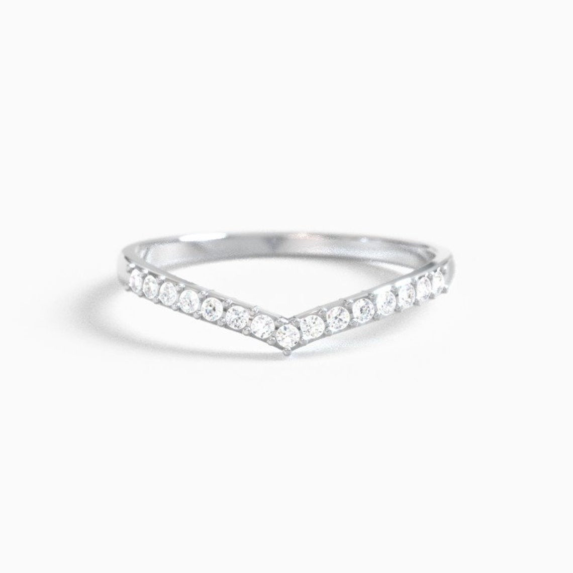 The subtle V-shaped design of this tiara band makes it easy to stack. Perfect for everyday wear, this ring features 1.25mm accent stones.