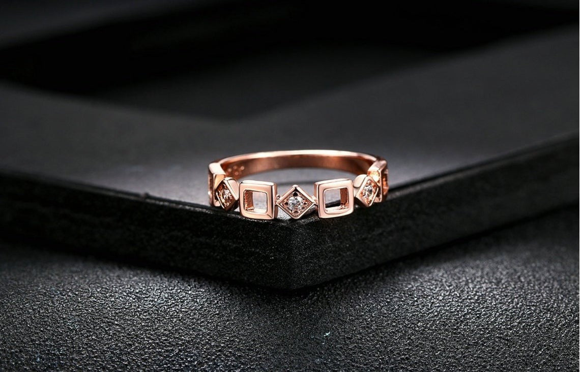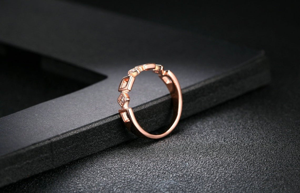 Round Diamond Square Shape Moissanite Wedding Band/ Rose gold vintage band/ Cluster Diamond Stackable Band/ Promise Anniversary gift/jewelry