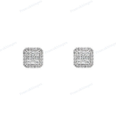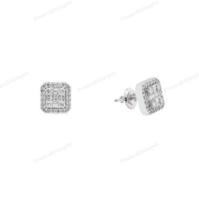 Sqaure Design Halo Setting Moissanite Diamond Earrings