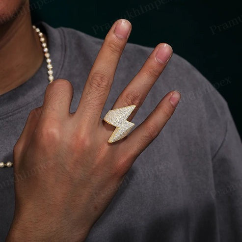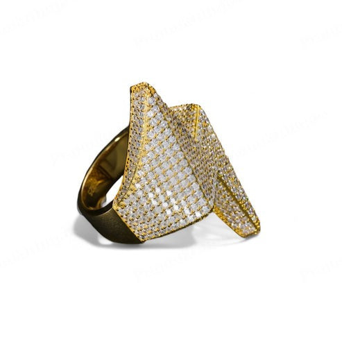 Top Trendy Design Yellow Gold Plated 925 Silver Moissanite Shocker Ring For Men's