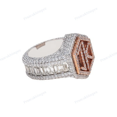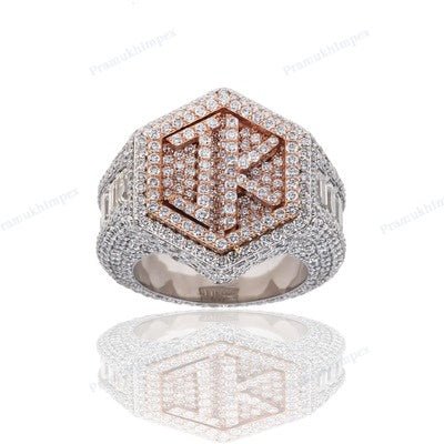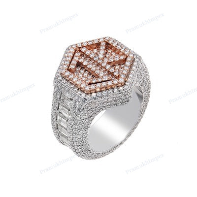 Two Tone Hexagon Design Custom Name JK Hip Hop Ring